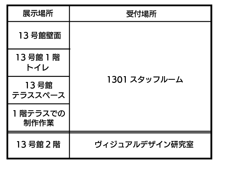 13号館1階を展示・制作作業で利用したい場合は、事前の申し込みが必要になります。